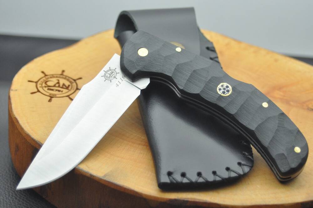 4116 Çelik, 58 hrc, Compact lamine kabza, sırttan kilitli Bushcraft model çakı.