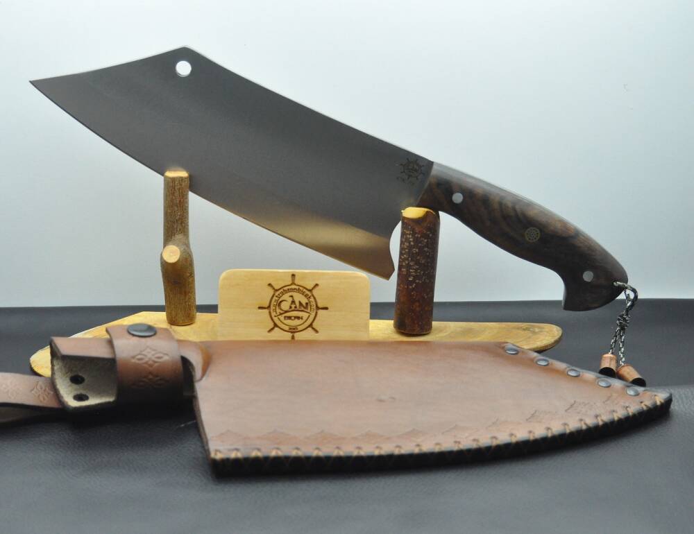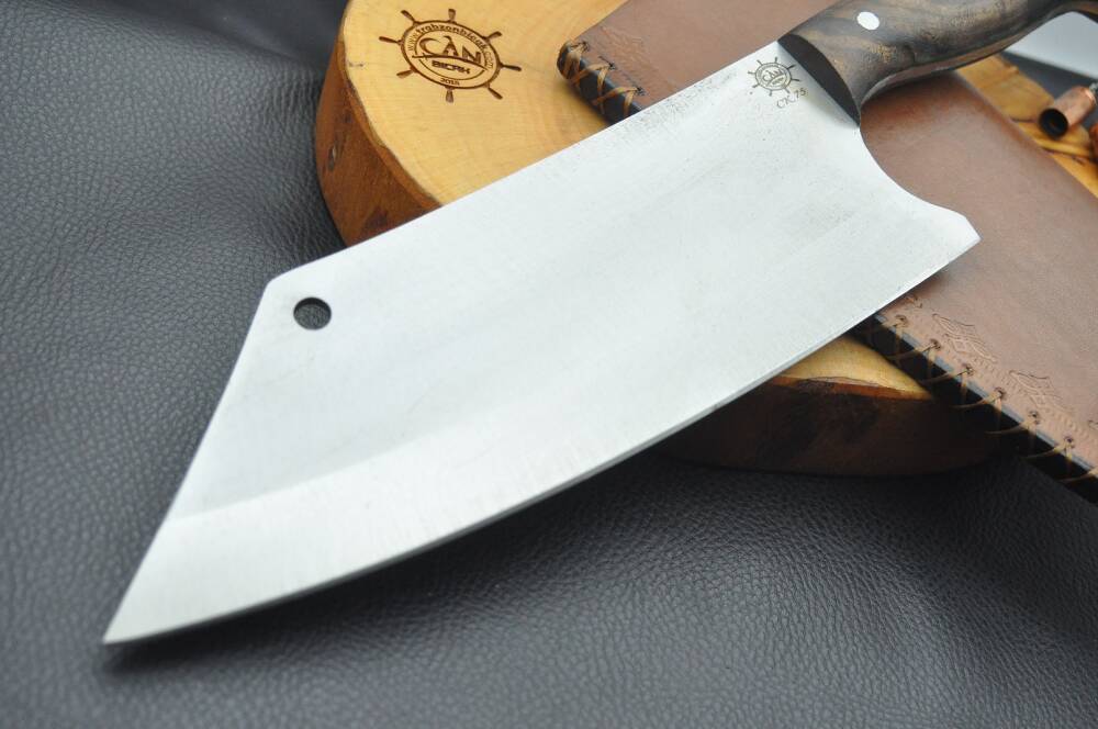 Ck75 yay çeliğinden dövme namlu, zeytin ağacı kabza, paracord ip aksesuar-kovan kombin, vaketa deri kılıflı el yapımı av ve kamp bıçağı.