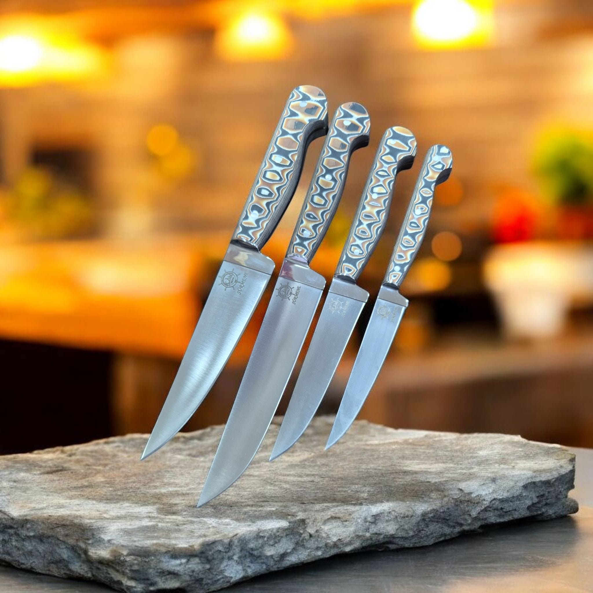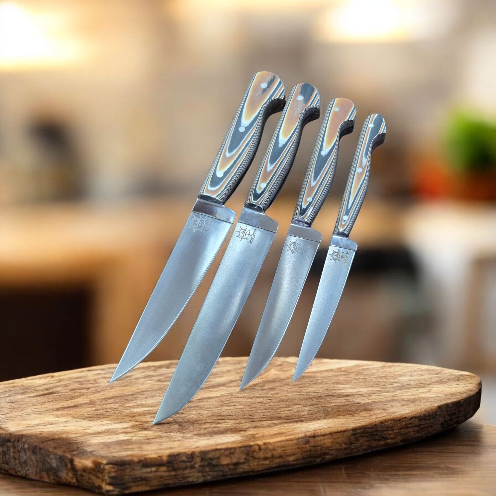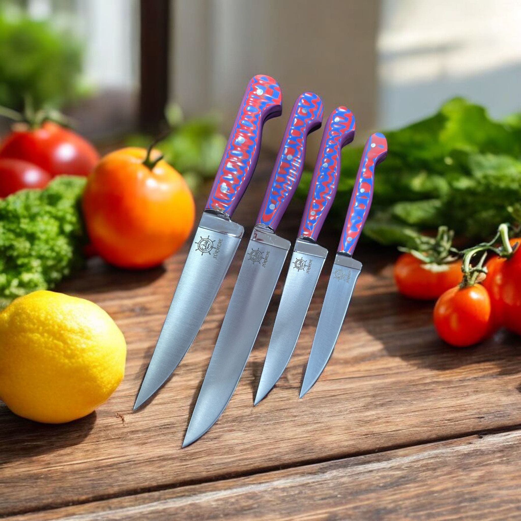 Trabzon Sürmene el yapımı T5 çelik mutfak seti, Sürmene Bıçak garantisi ile sahip olacağınız muhteşem bir bıçak setidir. El işçiliği ile üretilmiş göz nuru olan bu bıçaklar mutfak kullanımları için büyük kolaylık sağlar.Kabzası antibakteriyel werzalit malzemeden imal edilmiştir.Kabzada elden kaymaması için dramel işleme uygulanmıştır.
